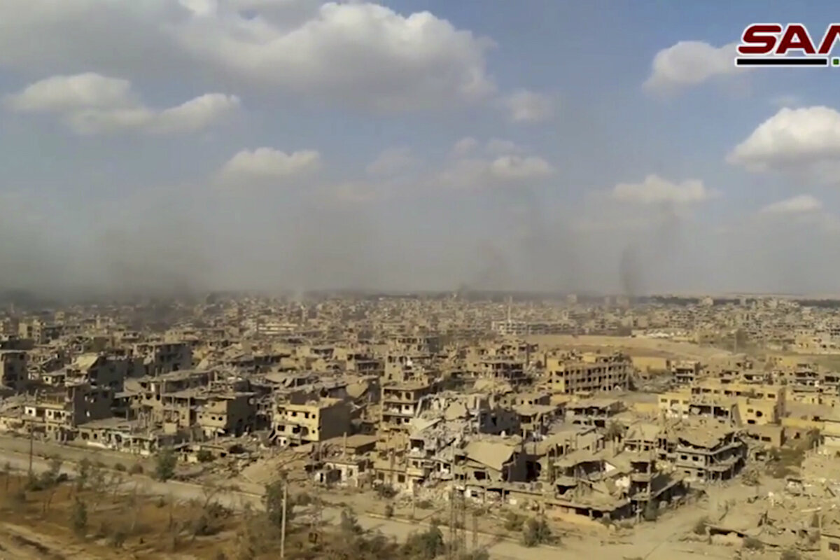 Footage posted on the website of the Syrian state news agency SANA shows the last moments of the fighting between the Syrian army and ISIS in Deir el-Zour, including shelling by Syrian tanks and plumes of smoke rising over the city's ISIS-held and mostly destroyed neighborhoods of Jamiayat and Jabiliyeh before they were liberated.