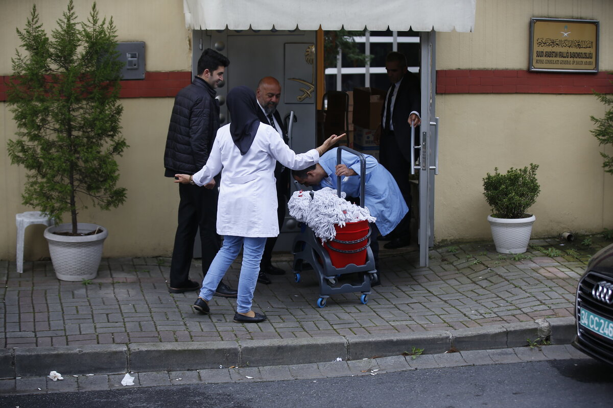 However, it remained unclear what evidence, if any, would remain after nearly two weeks since Khashoggi's disappearance. As if to drive the point home, a cleaning crew with mops, trash bags and cartons of milk walked in, past journalists waiting outside the consulate on Monday.