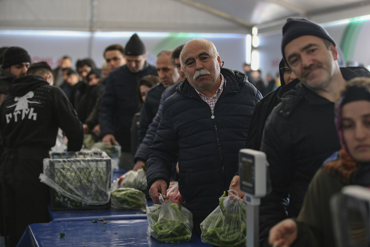 "People who live on minimum wage can't go to the neighborhood bazaar," says Reyhan Kelleci, a homemaker waiting in line who is, like many Turks, struggling with a jump in the cost of food and consumer goods. "These regulated tents have been very good for us.... What should we do? Should we sit at home and wait for our death?"