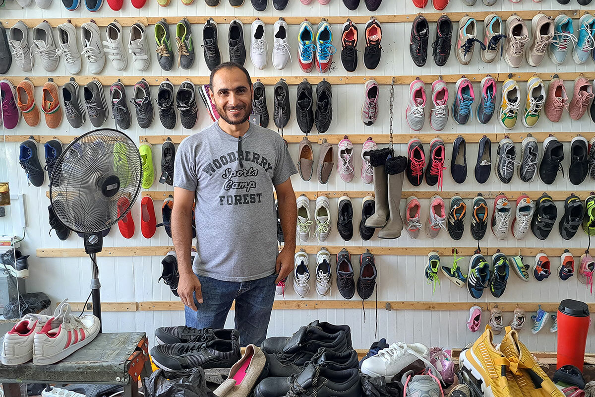 Firas Rifai is one of the few shop owners trying to hang on. He sells refurbished shoes from 75 cents to $12 a pair, netting $5 on a good day.