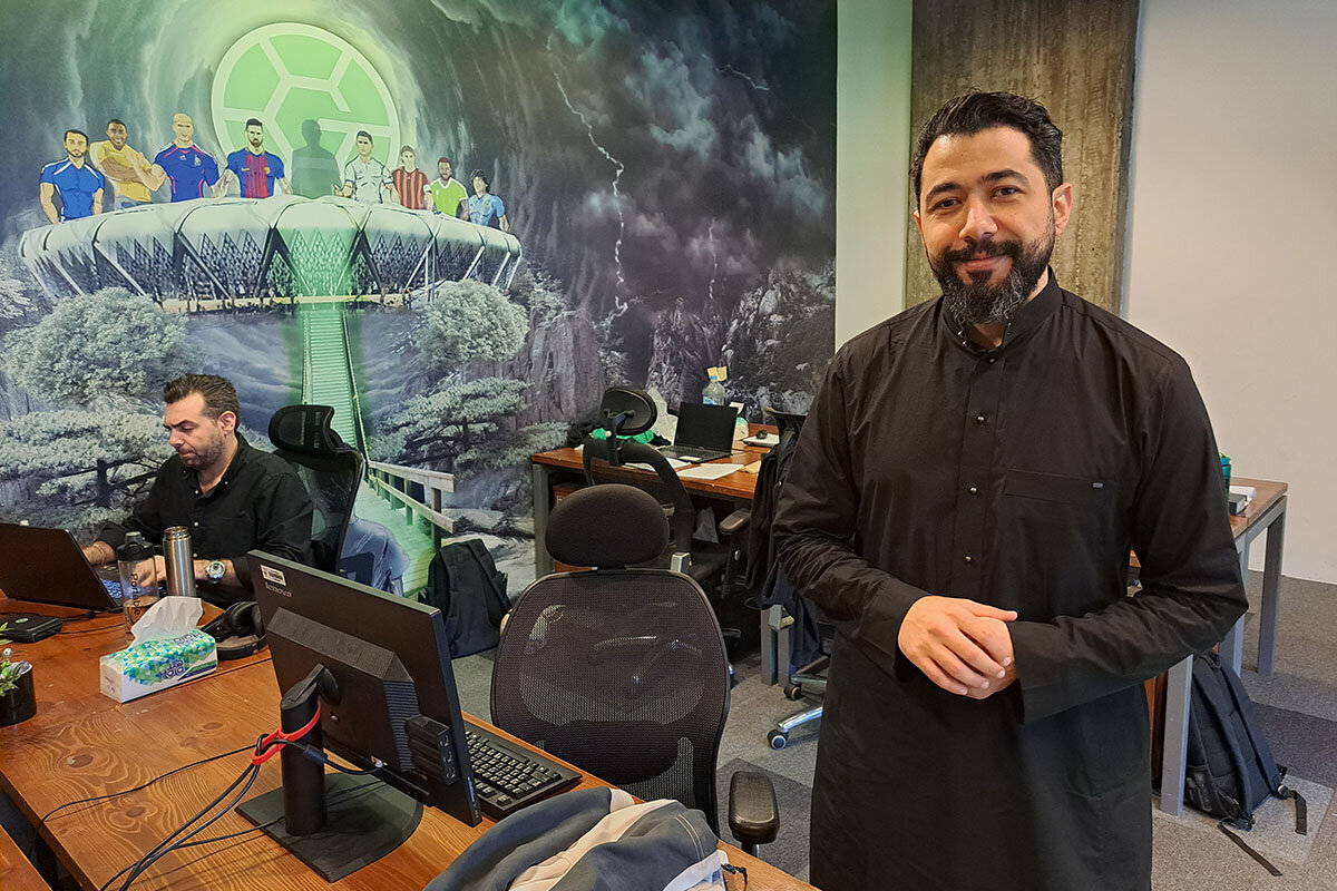 Standing in one corner is Majdi Al-Lulu, who four years ago was renting a desk at Vibes as he hashed out an idea for a Middle East soccer talent evaluator and scouting service.