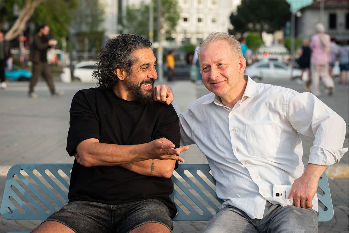 Mr.聽脟etin and the stranger, who turns out to be a middle-aged banker, have a civil discussion about the political situation, then laugh as they agree to disagree.