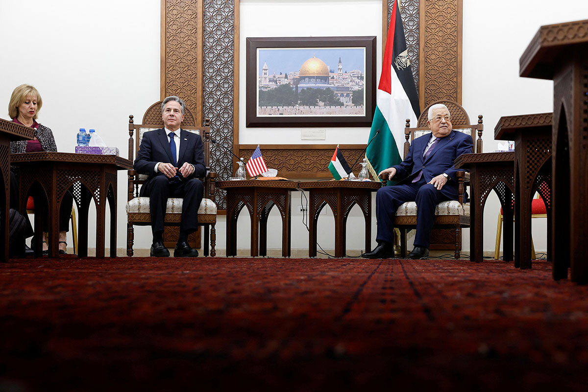 Breaking weeks of silence, PA President Mahmoud Abbas spelled out the Authority鈥檚 vision to U.S. Secretary of State Antony Blinken in Ramallah Saturday. The West Bank-based government would only 鈥渇ully assume our responsibilities within the framework of a comprehensive political solution that includes all of the West Bank, including East Jerusalem and the Gaza Strip,鈥 said Mr. Abbas, according to the Palestinian news agency, Wafa.