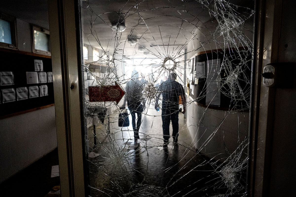 The glass entrance to the kibbutz dining hall is riddled with bullet holes. Inside, the recently renovated kitchen is blackened by fire, and carries the听stench of bodies听that remained there for days.