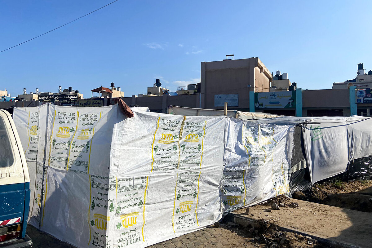 Tents are crammed all the way to the southwestern edge of the strip, pushed up against the Egyptian border.