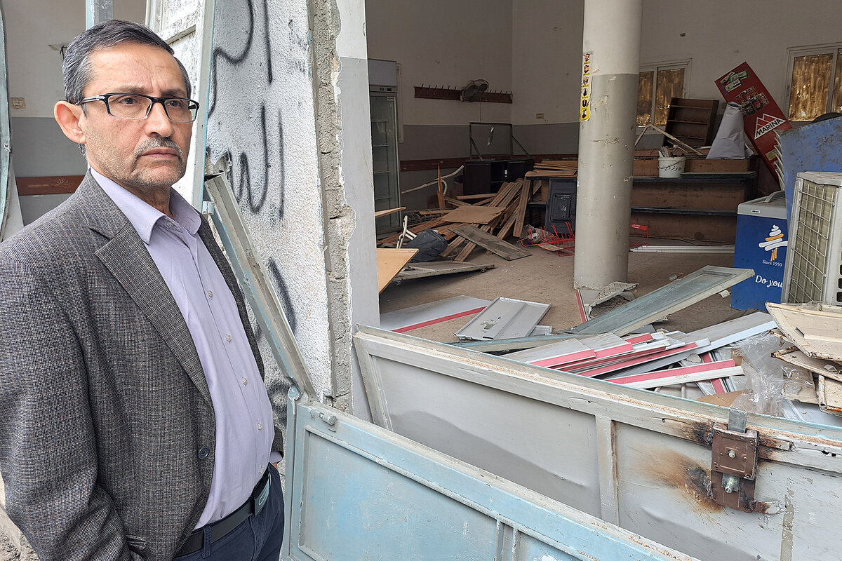 “Everything has been taken from us. We are not part of the armed resistance; we are not Hamas, but we were all targeted by the army,” Rafaat al-Tibi says, picking up shattered glass from his bare mobile phone shop. He is unable to buy new stock.