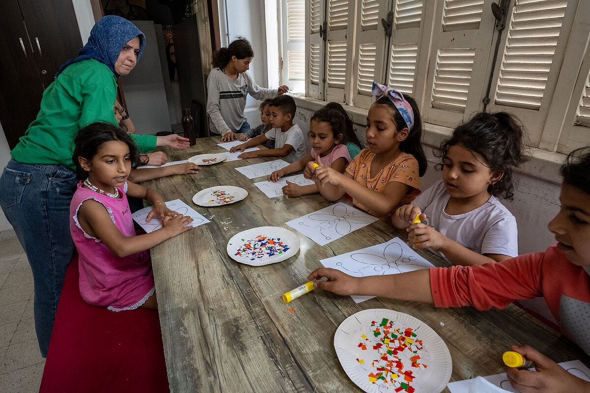 鈥淪ometimes air strikes happen, and the kids hear it here and start screaming 鈥撀爐hey developed a phobia from the bombing,鈥 Farah says. 鈥淭his [arts experience] makes them forget the war, and keeps their minds busy with something else.鈥