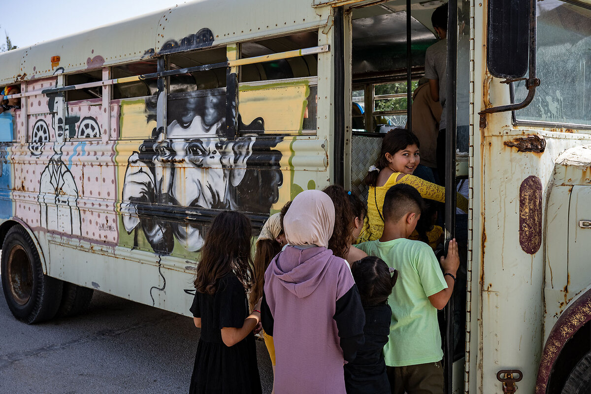 Displaced by war and traumatized by lives turned upside down, the Lebanese schoolchildren jump for joy, scream, and run with abandon when their bus arrives.