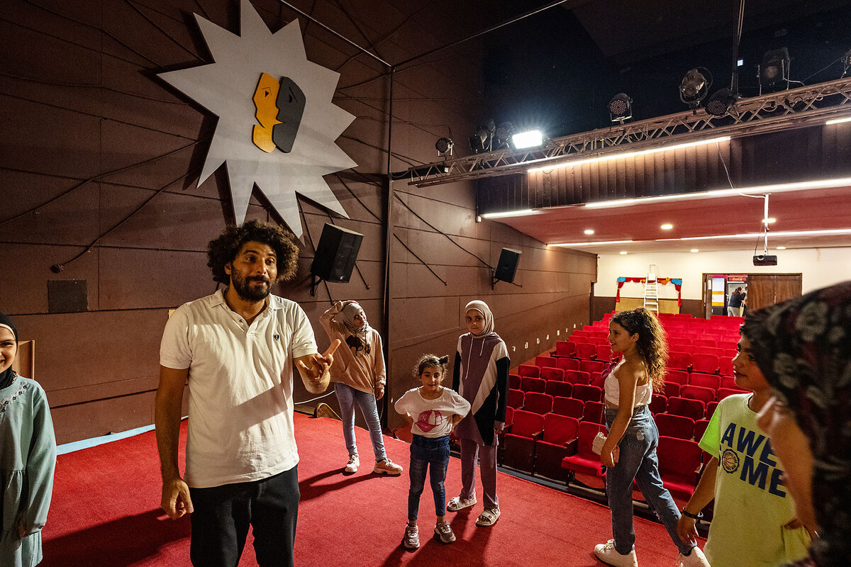 Some children go upstairs to draw and paint in rooms hung with old movie posters and antique metal film reels. Other children pass down the aisles of plush velvet seats in the auditorium and climb onto the stage, where Tiro Association executive director Kassem Istanbouli 鈥 with his voluminous hair and irresistible energy 鈥 leads a series of acting and role-play exercises under the stage lights.