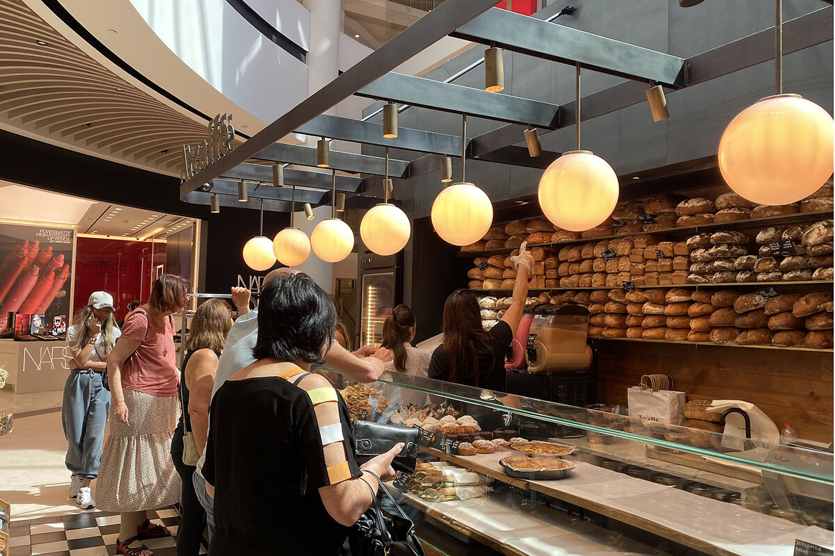People lined up to order cappuccinos and sandwiches, while others chatted around tables, clasping their warm mugs.