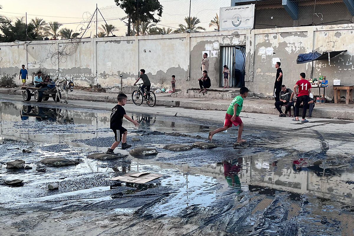 In the Al-Mawasi beach area and in Deir al-Balah, children going barefoot or wearing torn sandals wade through sewage-contaminated water and climb over mounds of garbage. Some of them scour for something to sell; others look for wood to burn or clothes to wear. Nearby, makeshift pits shielded by burlap serve as lavatories. There is nowhere to wash your hands.