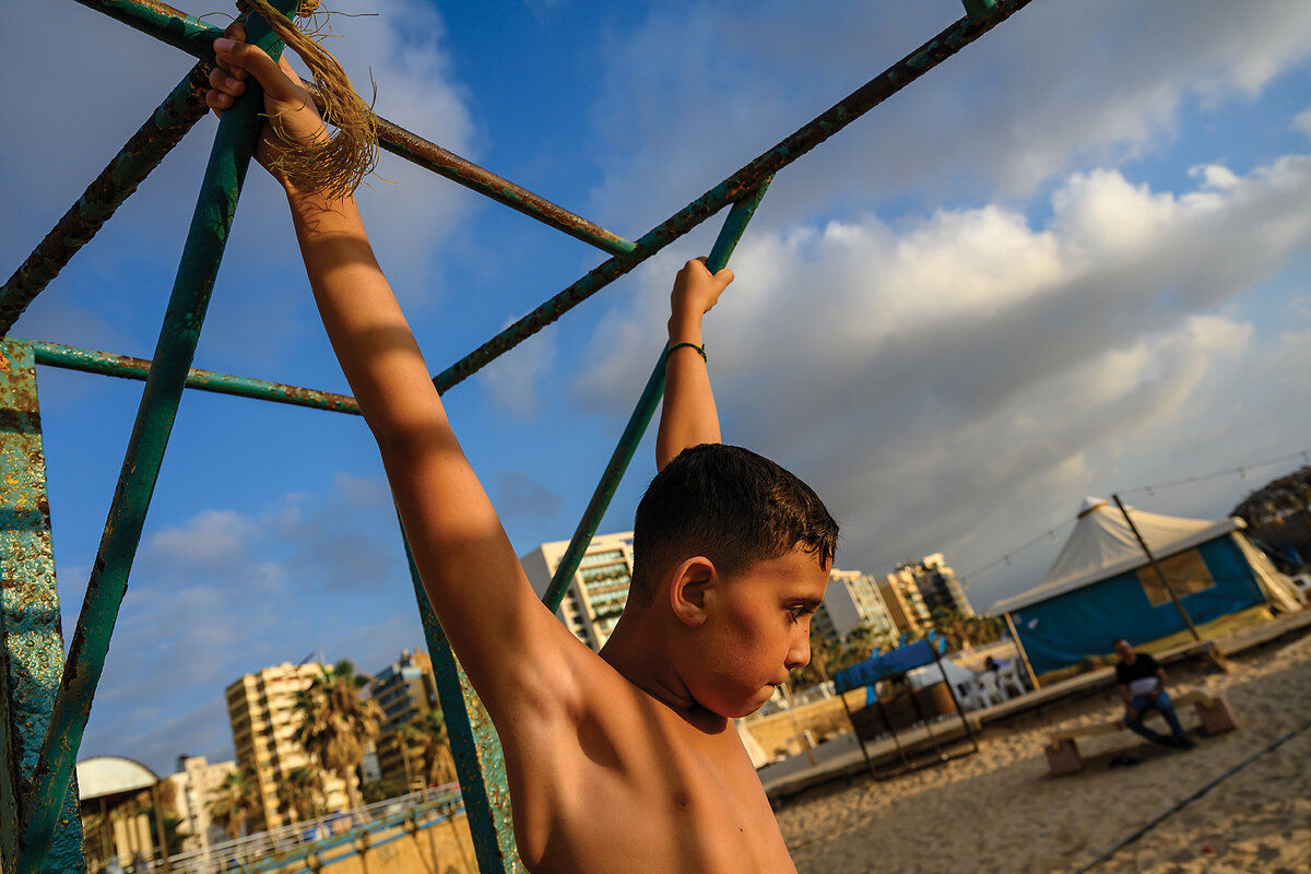 Not far away, displaced children played on the beach on climbing bars, singing as they swung. For a moment, the battering of Hezbollah and questions about its postwar future could not be further away, as the sun begins to set and the warm breeze blows.