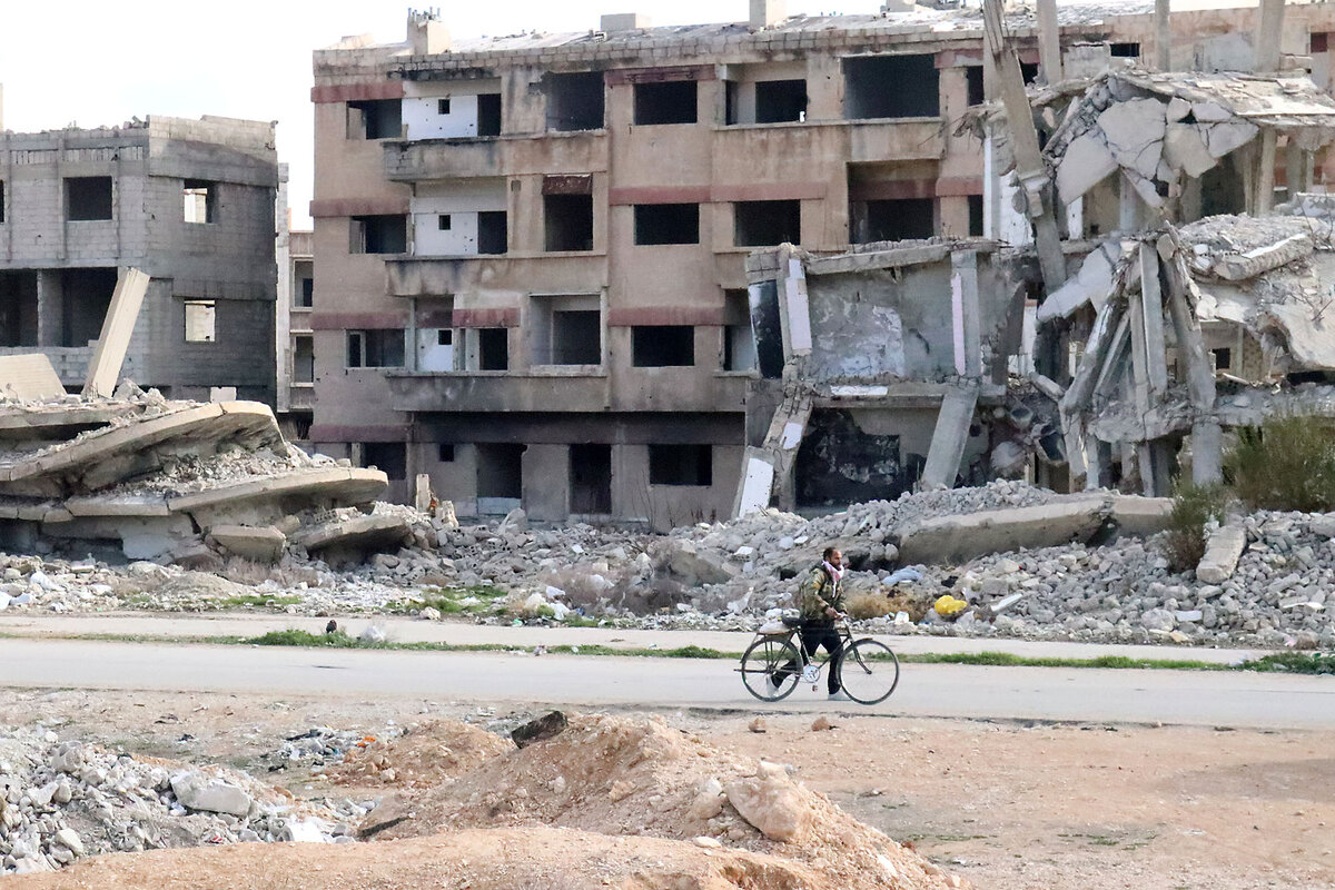 In Darayya, like in many Syrian communities, much of the town stands like a mausoleum: rows of five- and six-story apartment buildings reduced to cement skeletons with gaping holes, roofs sagged by barrel bombs, and foundation pillars detonated by well-placed TNT.