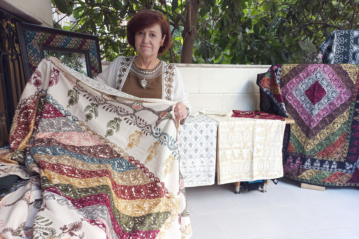 鈥淲orking on the embroidery machine for me is like drawing on paper,鈥 she says, sitting beside neat piles of embroidered tablecloths in her living room. Trays of sweets are set out for guests. 鈥淚t鈥檚 the art inside me that I express through my work. Whatever I imagine, I bring to life with my hands.鈥