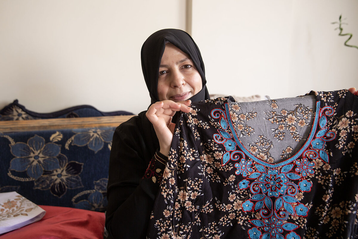 Now, twice a week, her apartment fills with the chatter and laughter of industrious women. Tuesdays are for Umm Meriee鈥檚 core team of six, skilled at detailed pieces such as prayer rugs and bridal wear. On Thursdays, the larger group meets 鈥 20 women, mostly housewives and widows, all trying to earn enough to meet their families鈥 needs.