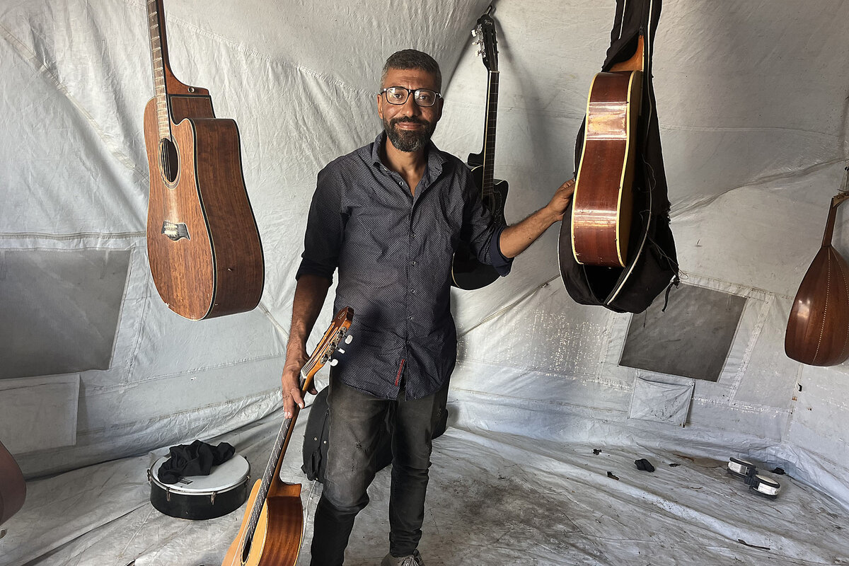 Mr. Abu Amsha鈥檚 eldest son, Mu鈥檌n, soon joined the project, learning to tune by ear and change the strings of an oud, a traditional Middle Eastern stringed instrument with a short neck and pear-shaped body, known for its warm, resonant tones. The family鈥檚 running inventory included five guitars, three ouds, four tabla drums, and three violins 鈥 some pieced together from shards, others donated.