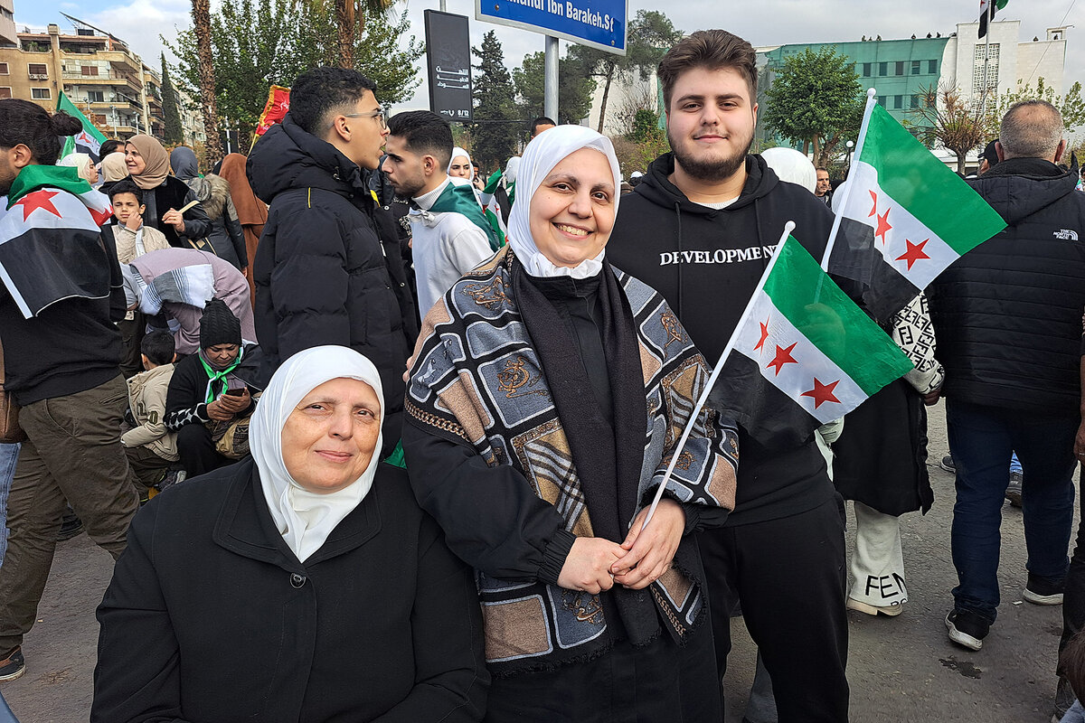At the city鈥檚 iconic Umayyad Square, which saw protests demanding democracy 鈥 and violent crackdowns by the Assad regime 鈥 hundreds of thousands of Syrians gathered with bullhorns, fireworks, drones, and flags of all sizes.