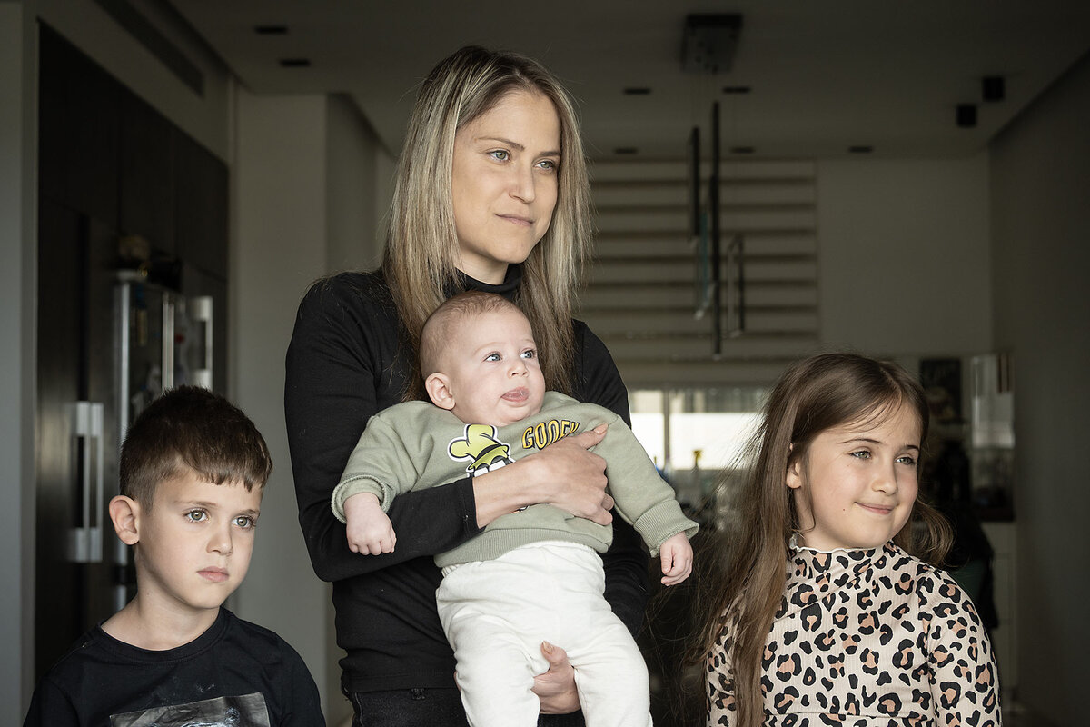 Since the start of the war with Iran, her husband has been on reserve duty as an air force medic, and she is at home alone with her three children. She battles exhaustion as she juggles nursing the infant with helping the older kids get online for school and do their homework.
