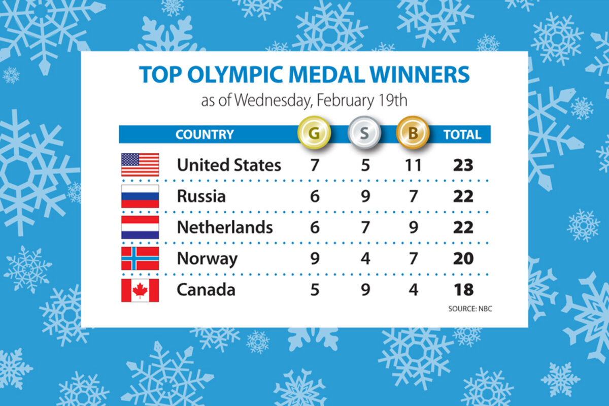 Strong performances in alpine skiing and women鈥檚 bobsled catapulted the US to the top of the rankings with 23 total medals, but Russia and the Netherlands are nipping at the US lead with 22 total medals each. Norway holds the overall gold medal lead with nine.聽