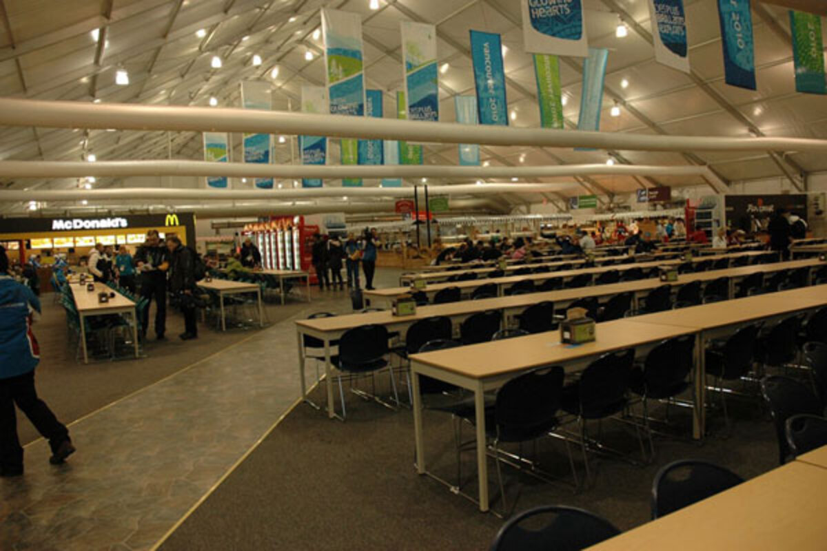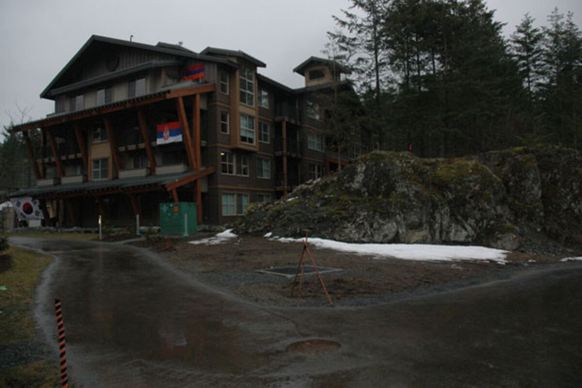 This is the Whistler Olympic athletes’ village in all its glory. Of course it also has mundane features: athletes clicking away inside computer labs, using the business center's bank and courier service, or shopping for aboriginal gifts – reflecting the organizing committee’s inclusive emphasis on Canada’s native peoples.