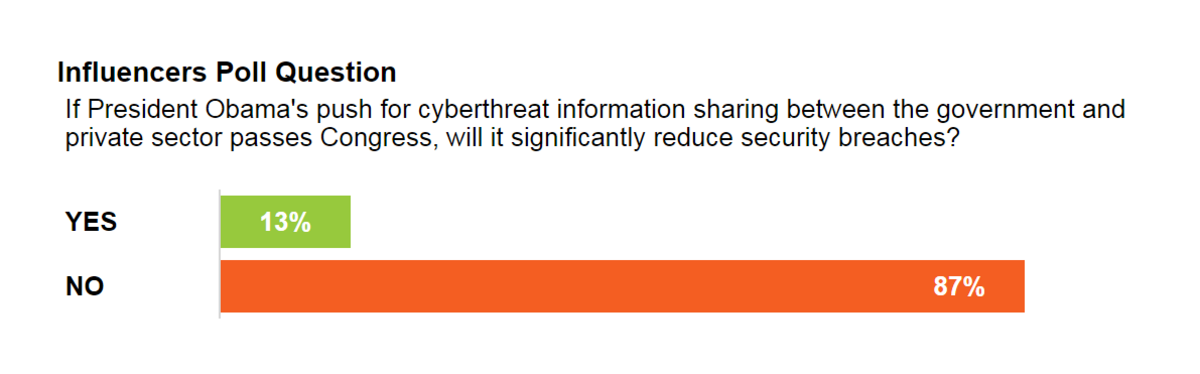 In the wake of several high-profile cyberattacks, President Obama pushed a plan to increase the exchange of information about threats between the private sector and the government.听Even if it passes Congress, however, a strong 87 percent majority of Passcode's Influencers say this initiative will not significantly reduce security breaches.