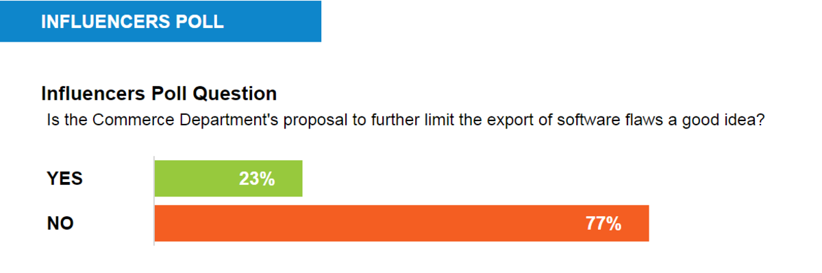 A strong majority of Passcode's Influencers oppose a new proposal by the US Commerce Department to further restrict the export of most software vulnerabilities.