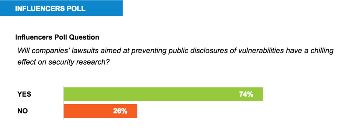 Companies鈥 lawsuits aimed at preventing public disclosures of vulnerabilities will have a chilling effect on security research, a majority of Passcode Influencers said.