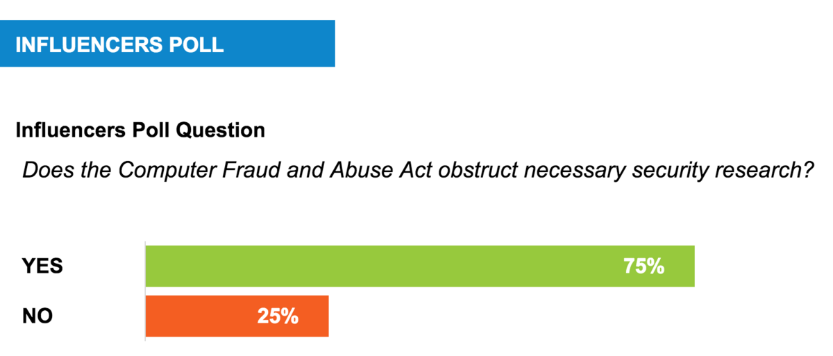 A strong 75 percent majority of Passcode鈥檚 Influencers said a US government law used to prosecute hackers overly restricts necessary security research.