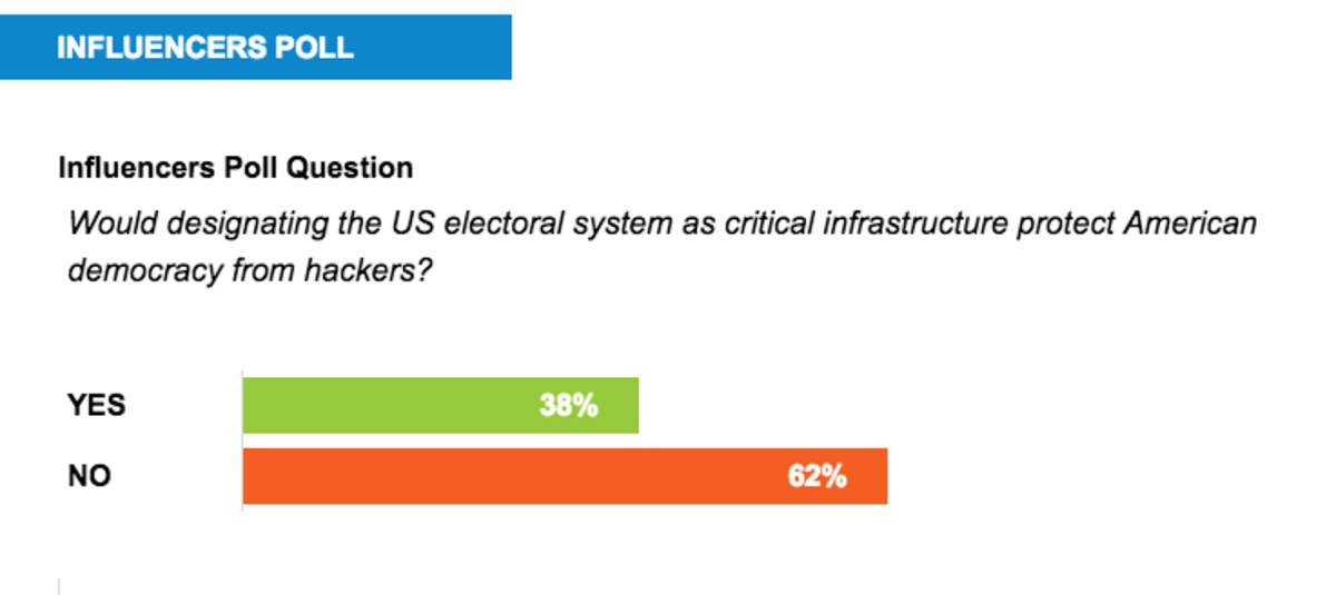 Designating the US electoral system critical infrastructure will not protect American democracy from hackers, said 62 percent of Passcode's Influencers.