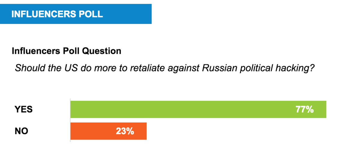 However, some experts insist it鈥檚 too early to begin talking about further penalties for the suspected Russian digital attacks. A small but vocal 24 percent minority of Influencers said it wasn鈥檛 the right time to respond, given a lack of what they said was compelling evidence.