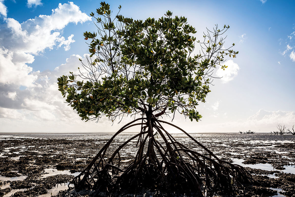 Women in coastal Mozambique replanted 125 hectares of mangroves damaged by flooding. In 2000, floods caused by Tropical Cyclone Eline destroyed half of the mangroves in the estuary where the Limpopo River opens to the Indian Ocean. Over the past 15 years, women from nearby communities have been working to restore the delicate mangrove ecosystem, which provides communities access to small fish, crabs, and wood while reducing erosion, filtering seawater, and absorbing atmospheric carbon.