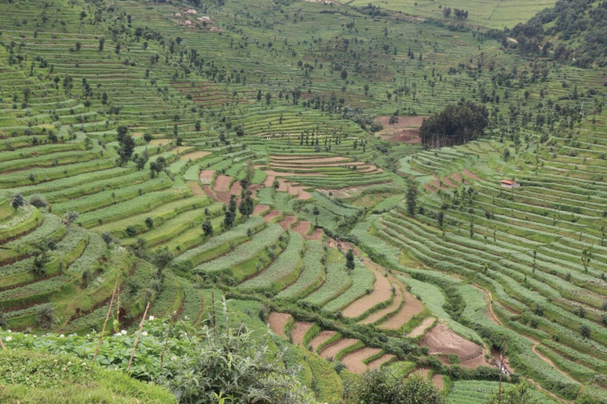 Around 70% of the population relies on farming in Rwanda, often called the 鈥渓and of a thousand hills.鈥 Instead of crops being planted along the contour of a hill, which lets rainwater run downward, 鈥渞adical terraces鈥 slope backward toward the mountain. Erosion is reduced and helps keep soil fertile.