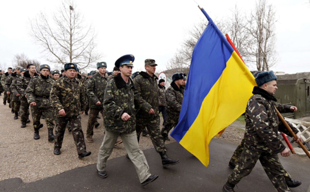 For Col. Yuli Mamchar, the commander of Ukraine's Belbek air base outside Sevastopol, the accusations traded between the Russian and US presidents in dueling press conferences today are hard to laugh off. Consider what happened today at Belbek.