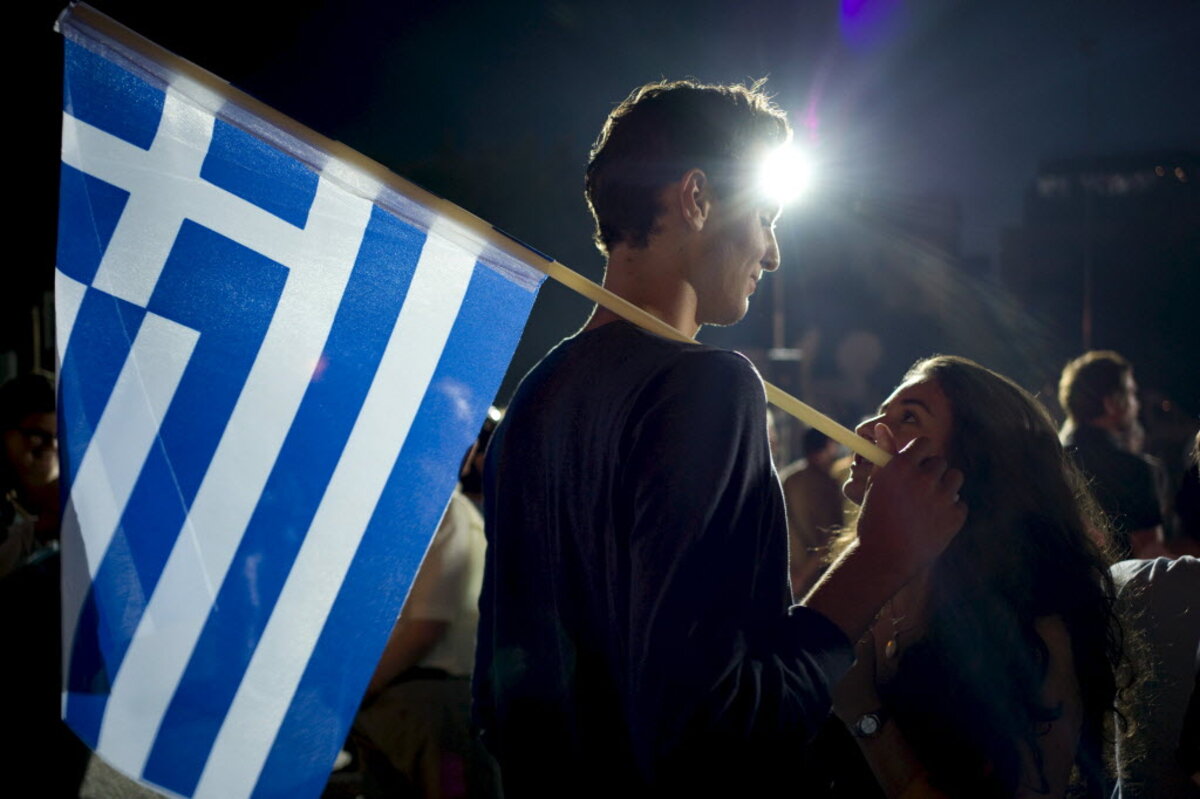 Greeks, citing national pride and sovereignty, voted overwhelmingly Sunday to reject a package of tax increases, government layoffs, and pension reductions demanded by wealthier eurozone nations in exchange for a new financial lifeline for the bankrupt country.
