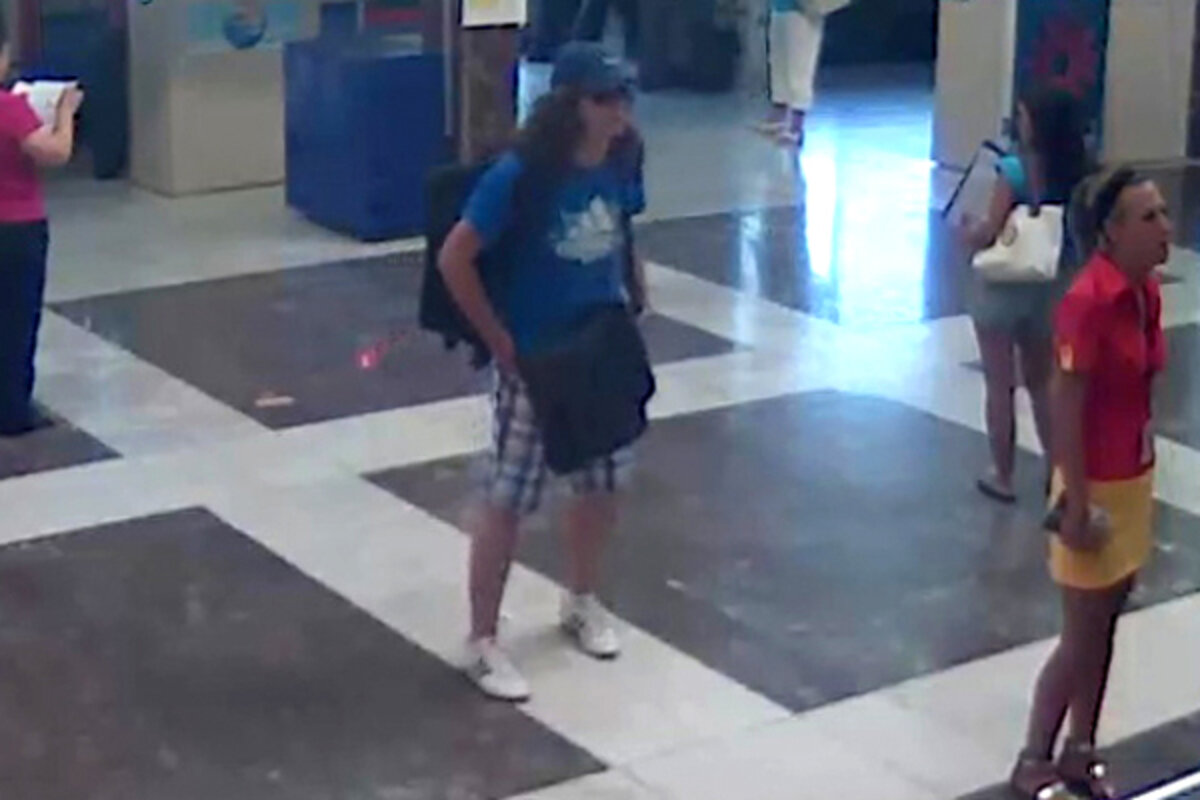 Bulgarian authorities have released CCTV footage from the airport that shows the man they believe to be the听bomber wandering the terminal with a baseball cap, T-shirt, and plaid shorts. He is carrying a bulky backpack believed to contain the bomb, AP reports.