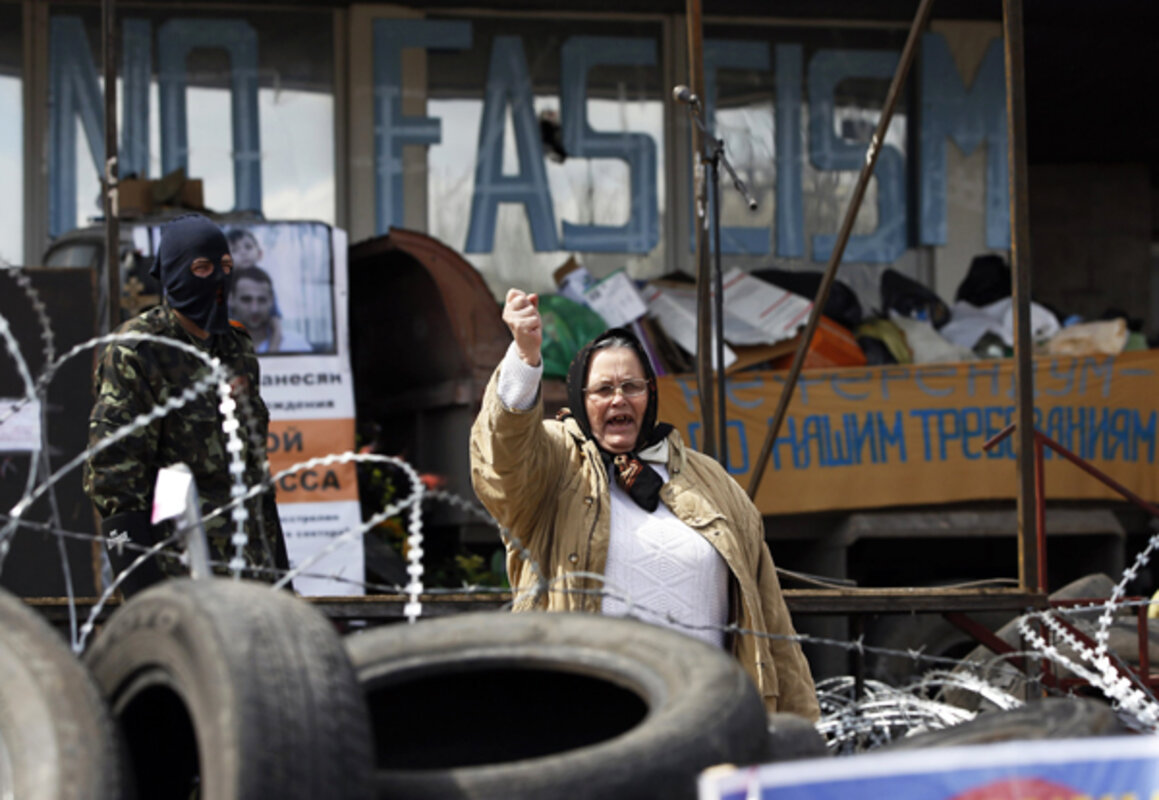 In Slovyansk, which emerged as a key city in the recent wave of unrest, there was no sign of the Ukrainian military and the mood remained calm, although many shops were closed. A man guarding a barricade outside the city's main police station, which was seized on Sunday, said the protesters were prepared for any assault.