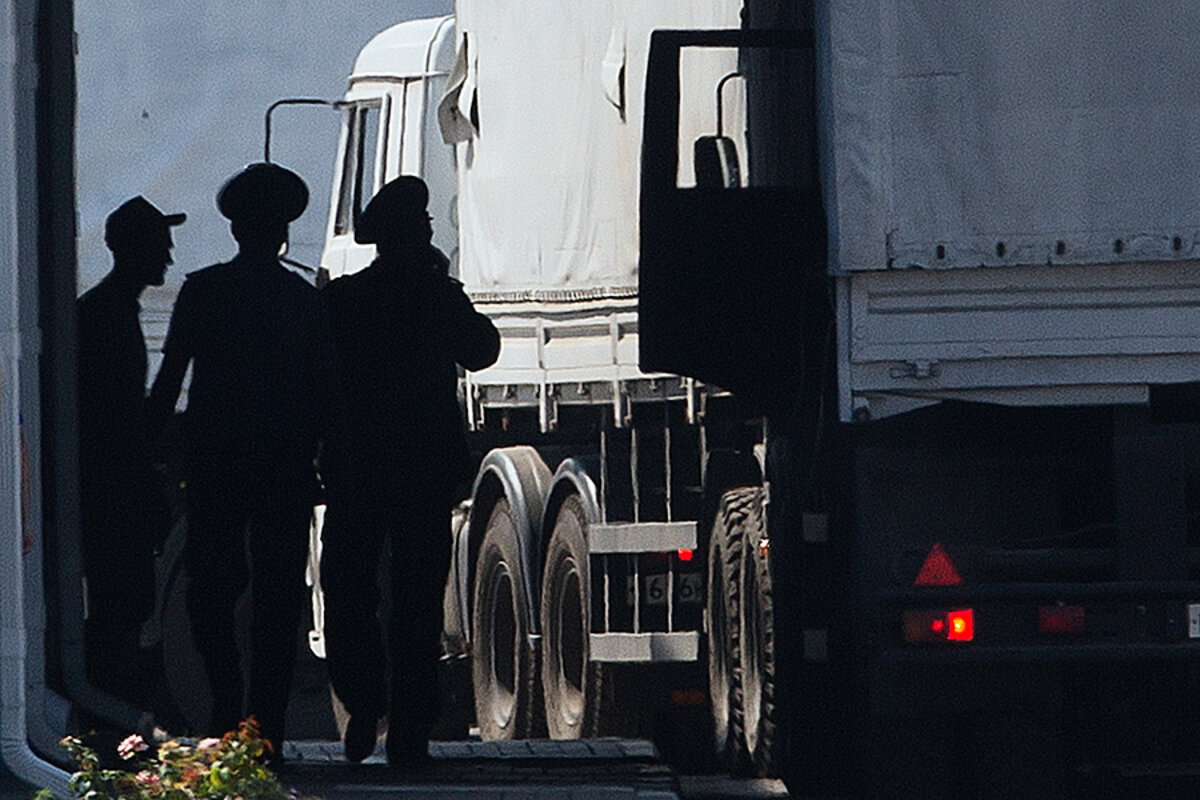 Colonel Andriy Lysenko, the spokesman for National Security and Defense Council, said that only 34 trucks had been cleared so far. He said that most of the cleared trucks were loaded only by two-thirds.