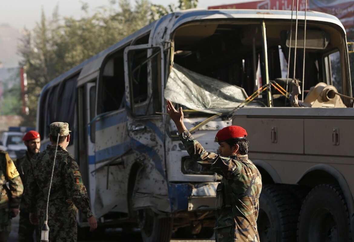 The first attacker hit a bus with Afghan National Army officers in west Kabul, killing seven and wounding 15, said the city's criminal investigation police chief Mohammad Farid Afzali.