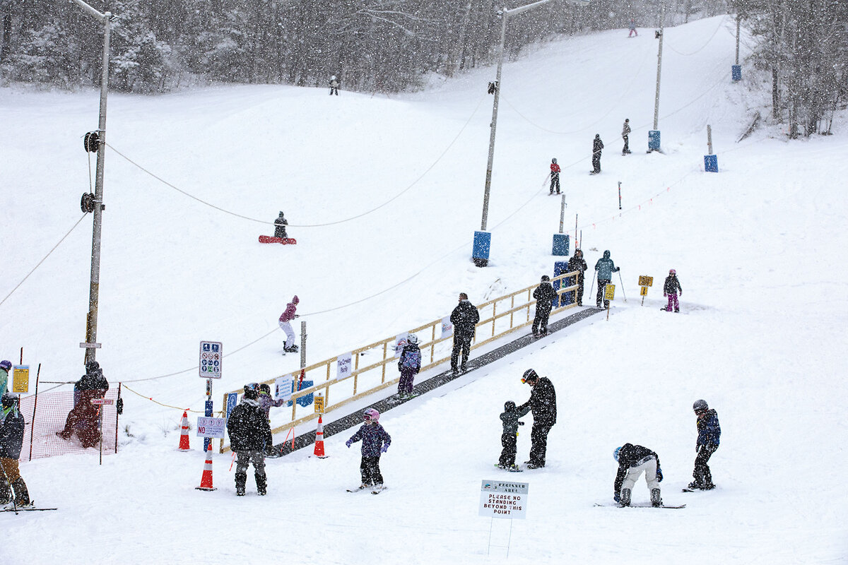 Under the lights of The Vets on this January evening, beyond the glow of a firepit, a group of parents is enthusiastically cheering on its budding Olympians. The tiniest skiers step on a slow-moving 鈥渂unny belt鈥 that moves them about