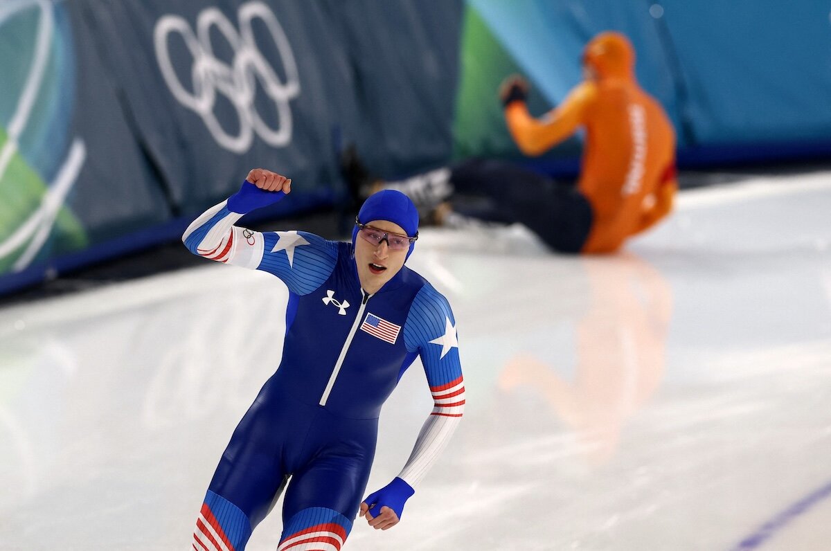 In Wednesday鈥檚 1,000-meter speedskating race, American Jordan Stolz had started slowly and needed nearly every meter to beat his fiercest rival, Jenning de Boo of the Netherlands.