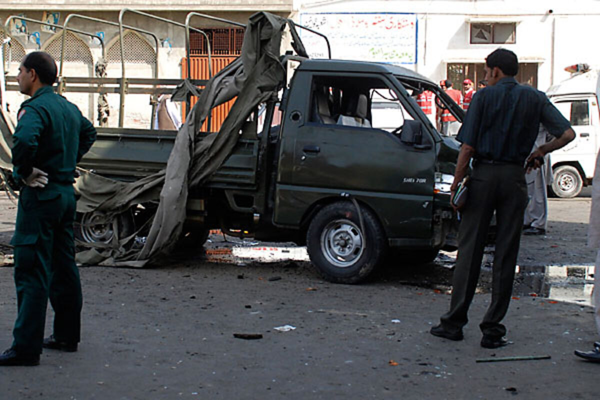 Friday's twin bombs, apparently timed to hit large crowds on their way to afternoon prayers, may also have targeted military and security offices in the area. Military officials are said to be among the , reports Pakistan鈥檚 Dawn. ABC News reports that one of the bombers detonated his explosive next to Army vehicles聽parked near a bazaar. Reuters reports at least 聽in the bloodiest attack this year.
