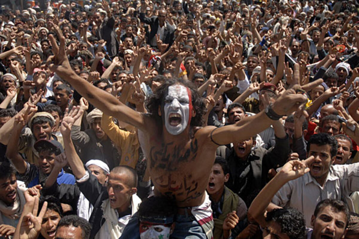 Agence France-Presse reports that protesters in Sanaa were trying to march to a , a bold and defiant move.