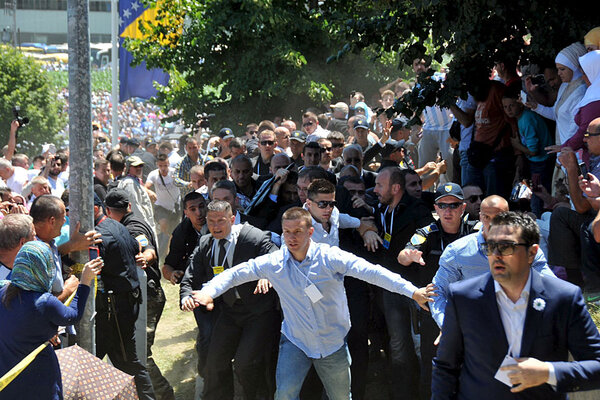 Serbia's prime minister flees Srebrenica memorial after 'assassination attempt'