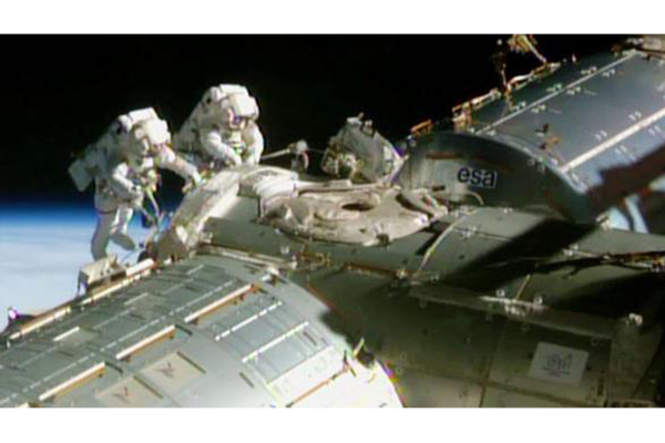 Astronauts spruce up space station for commercial spacecraft